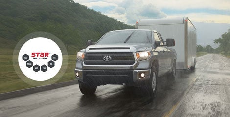 Tundra comes standard with the Star Safety System™, a suite of six advanced safety features that includes Vehicle Stability Control (VSC), Traction Control (TRAC), Anti-lock Brake System (ABS), Electronic Brake-force Distribution (EBD), Brake Assist (BA) and Smart Stop Technology® (SST).