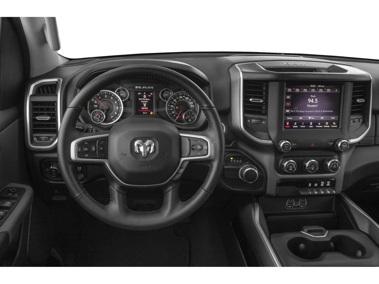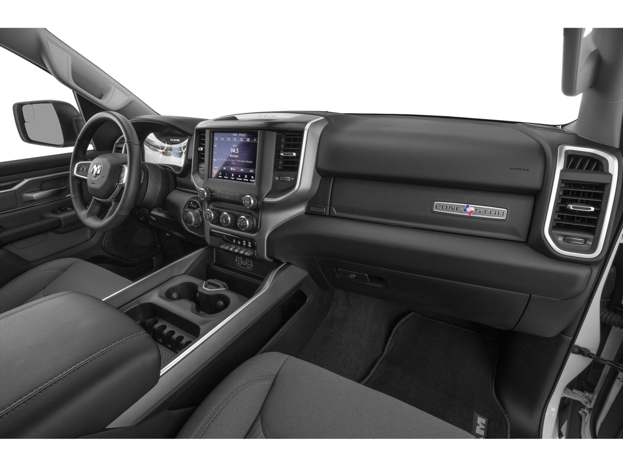 Big Horn Level 1 Equipment Group (Auto-Dimming Rear-View Mirror, Big Horn IP Badge, Class IV Receiver Hitch, Cluster 3.5" TFT Color Display, Foam Bottle Insert (Door Trim Panel), Glove Box Lamp, Power 4-Way Driver Lumbar Adjust, Power 8-Way Driver Seat, Power Adjustable Pedals, Power Heated Fold Away Mirrors, Radio: Uconnect 4 w/8.4" Display, Rear Dome w/On/Off Switch Lamp, Rear Power Sliding Window, Rear Window Defroster, Single Disc Remote CD Player, SiriusXM Satellite Radio, Sun Visors w/Illuminated Vanity Mirrors, and Universal Garage Door Opener), Lone Star Package (Lone Star Badge), Off Road Group (E-Locker Rear Axle, Front Extra HD Shock Absorbers, Hill Descent Control, Off Road Decals, Rear Extra HD Shock Absorbers, and Tow Hooks), Quick Order Package 23Z Big Horn/Lone Star (Steering Wheel Mounted Audio Controls), Sport Appearance Package (3 Rear Seat Head Restraints, 4 Way Front Headrests, Auto-Dimming Exterior Driver Mirror, Black Interior Accents, Body Color Door Handles, Body Color Front Bumper, Body Color Rear Bumper w/Step Pads, Bucket Seats, Center Console Parts Module, Deluxe Cloth Bucket Seats, Exterior Mirrors Courtesy Lamps, Exterior Mirrors w/Memory, Exterior Mirrors w/Supplemental Signals, Front Seat Back Map Pockets, Full Length Floor Console, Grille B/Color Outline 1 Texture 2, Manual Adjust 4-Way Front Passenger Seat, Power Heated Fold-Away Mirrors, Power-Folding Mirrors, and Rear 60/40 Folding Seat), **CLEAN CARFAX**, 3.21 Rear Axle Ratio, 4-Wheel Disc Brakes, 48V Belt Starter Generator, 6 Speakers, ABS brakes, Air Conditioning, Alloy wheels, AM/FM radio, Brake assist, Bumpers: chrome, Cloth Bench Seat, Compass, Delay-off headlights, Driver door bin, Dual front impact airbags, Dual front side impact airbags, Electronic Stability Control, Front anti-roll bar, Front Center Armrest w/Storage, Front fog lights, Front reading lights, Front wheel independent suspension, Fully automatic headlights, GPS Antenna Input, Heated door mirrors, Illuminated entry, Leather steering wheel, Low tire pressure warning, Occupant sensing airbag, Outside temperature display, Overhead airbag, Overhead console, Panic alarm, ParkSense Front/Rear Park Assist w/Stop, ParkView Rear Back-Up Camera, Passenger door bin, Passenger vanity mirror, Power door mirrors, Power steering, Power windows, Radio data system, Radio: Uconnect 3 w/5" Display, Rear anti-roll bar, Rear seat center armrest, Rear step bumper, Remote keyless entry, Speed control, Split folding rear seat, Tachometer, Telescoping steering wheel, Tilt steering wheel, Traction control, Trip computer, Variably intermittent wipers, Voltmeter, Wheels: 18" x 8", and Wheels: 20" x 9" Aluminum Chrome Clad.