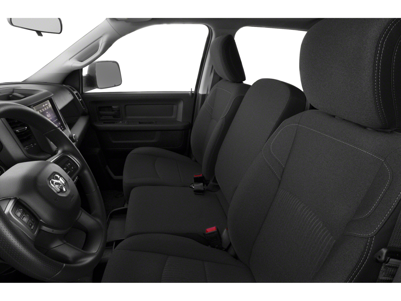 Chrome Appearance Group (Bright Front Bumper, Bright Rear Bumper, Chrome Grille Surround, Matte Black Mesh Grille w/Chrome, and Wheels: 18" x 8.0" Steel Chrome Clad), DOT Certified Roadside Safety Kit (2 Red Vinyl Flags, 3 Reflecting Triangles, DOT Fire Extinguisher, and Spare Fuses), Quick Order Package 2HA Tradesman, **LOCAL TRADE**, **AUTOMATIC**, 17" x 7.5" Steel Styled Wheels, 2 Way Rear Headrest Seat, 3.73 Axle Ratio, 4 Way Front Headrests, 4-Wheel Disc Brakes, 40/20/40 Split Bench Seat, 6 Speakers, ABS brakes, Active Noise Control System, Air Conditioning, AM/FM radio, Black Exterior Mirrors, Brake assist, Center Hub, Chrome Flat Cab-Length Side Steps, Compass, Delay-off headlights, Driver door bin, Dual front impact airbags, Dual front side impact airbags, Electronic Stability Control, Electronically Controlled Throttle, Exterior Mirrors Courtesy Lamps, Exterior Mirrors w/Heating Element, Exterior Mirrors w/Supplemental Signals, Front & Rear Rubber Floor Mats, Front anti-roll bar, Front Center Armrest w/Storage, Front reading lights, Fully automatic headlights, GPS Antenna Input, Heated door mirrors, Heavy Duty Vinyl 40/20/40 Split Bench Seat, I/P Mounted Auxiliary Switches, Illuminated entry, Integrated Voice Command w/Bluetooth®, Low tire pressure warning, Manual Adjust 4-Way Driver Seat, Mirror Running Lights, Occupant sensing airbag, Outside temperature display, Overhead airbag, Overhead console, ParkSense Rear Park Assist System, ParkView Rear Back-Up Camera, Passenger door bin, Passenger vanity mirror, Power Adjust & Heated Black Tow Mirrors, Power door mirrors, Power steering, Power windows, Radio data system, Radio: Uconnect 3 w/5" Display, Rear anti-roll bar, Rear Folding Seat, Rear step bumper, Speed control, Spray In Bedliner, Tachometer, Tilt steering wheel, Tip Start, Tow Hooks, Traction control, Trailer Brake Control, Trailer Tow Mirrors, USB Host Flip, Variably intermittent wipers, and Voltmeter.